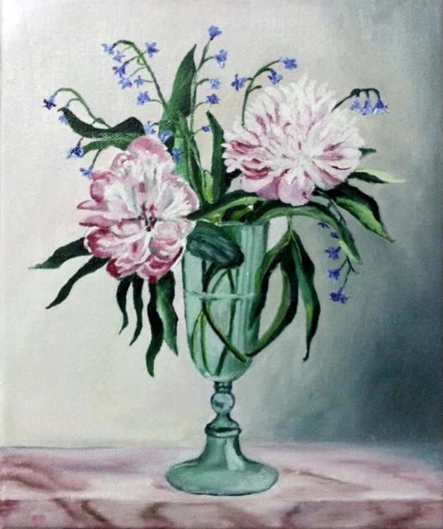 Copa con dahlias